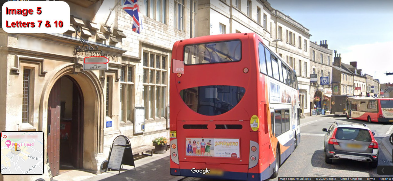 Find all the letters, then re-arrange to find where the "treasure" has been hidden. It will be somewhere in the same town visible on Street View/Google Maps.