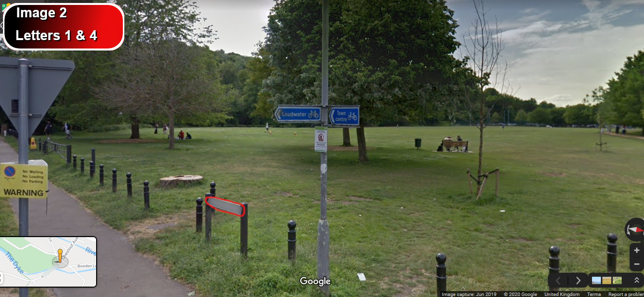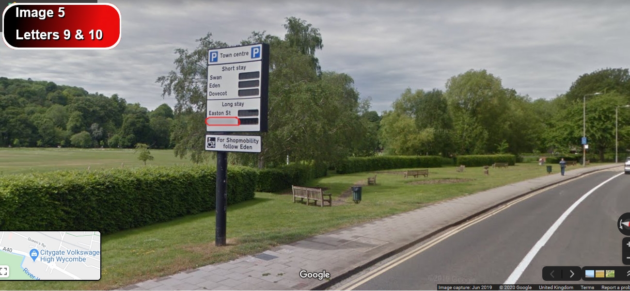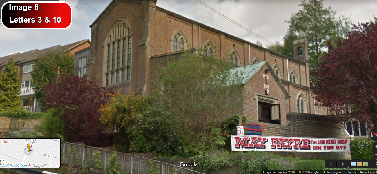 So if you find the sign reads St. Mary's Church and the panel says letters 4 & 8, you take the letters A and C. Make a note of these.