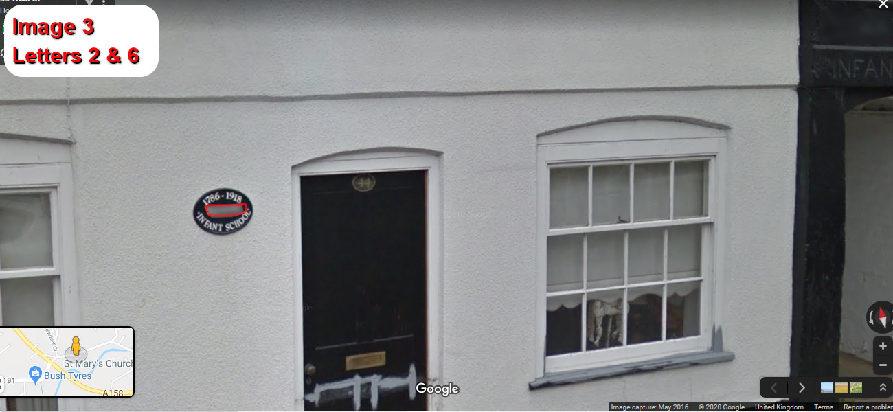 So if you find the sign reads St. Mary's Church and the panel says letters 4 & 8, you take the letters A and C. Make a note of these.