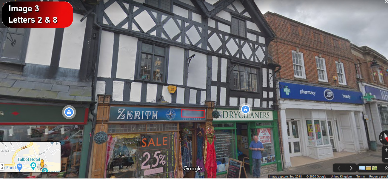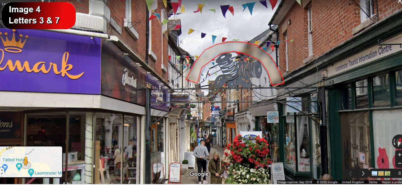 Find all the letters, then re-arrange to find where the "treasure" has been hidden. It will be somewhere in the same town visible on Street View/Google Maps.