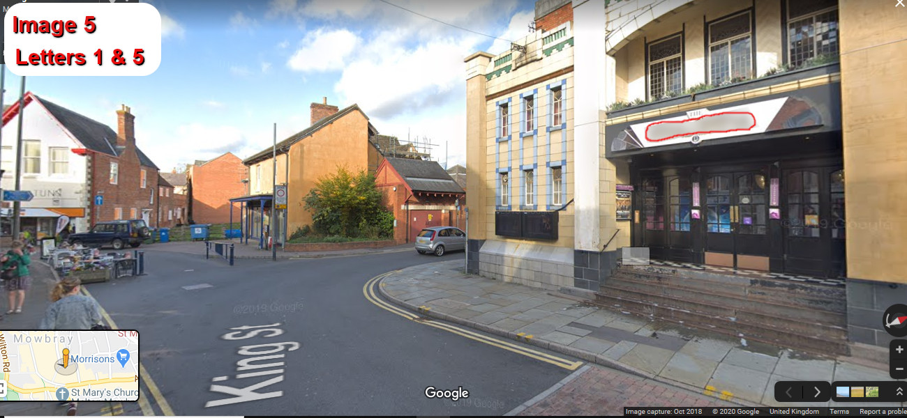 Find all the letters, then re-arrange to find where the "treasure" has been hidden. It will be somewhere in the same town visible on Street View/Google Maps.