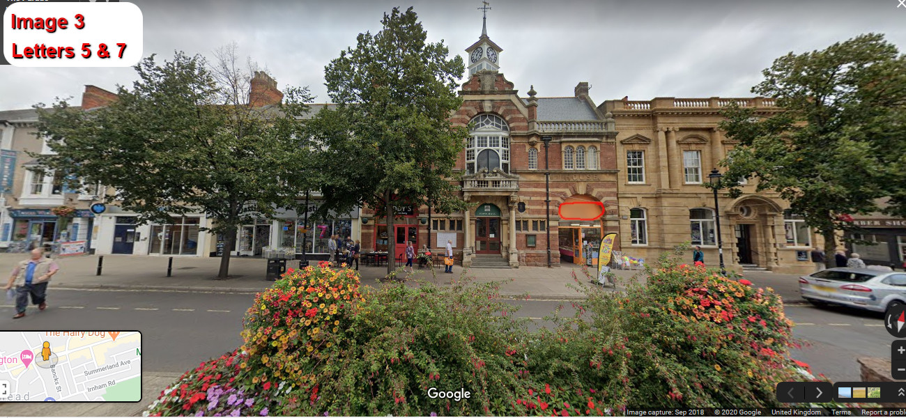 Find all the letters, then re-arrange to find where the "treasure" has been hidden. It will be somewhere in the same town visible on Street View/Google Maps.