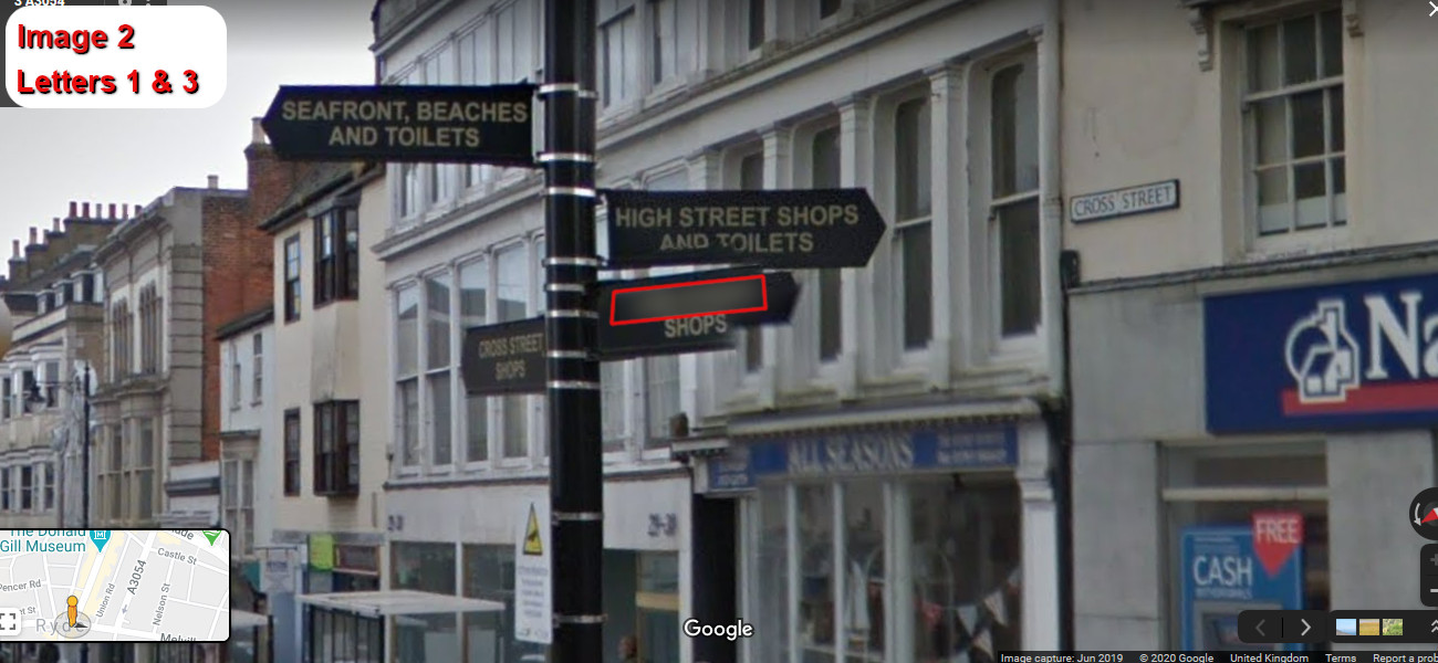 Find all the letters, then re-arrange to find where the "treasure" has been hidden. It will be somewhere in the same town visible on Street View/Google Maps.