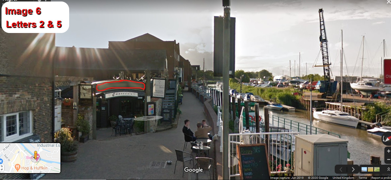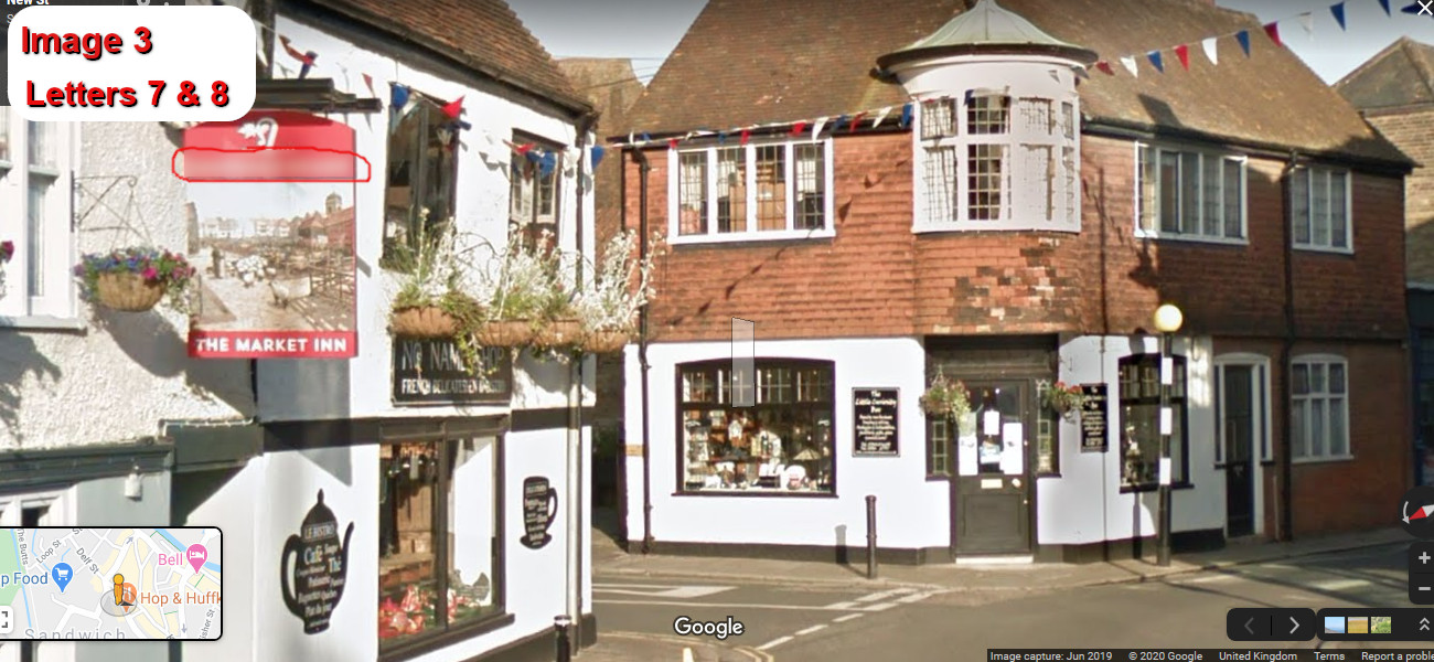 Find all the letters, then re-arrange to find where the "treasure" has been hidden. It will be somewhere in the same town visible on Street View/Google Maps.