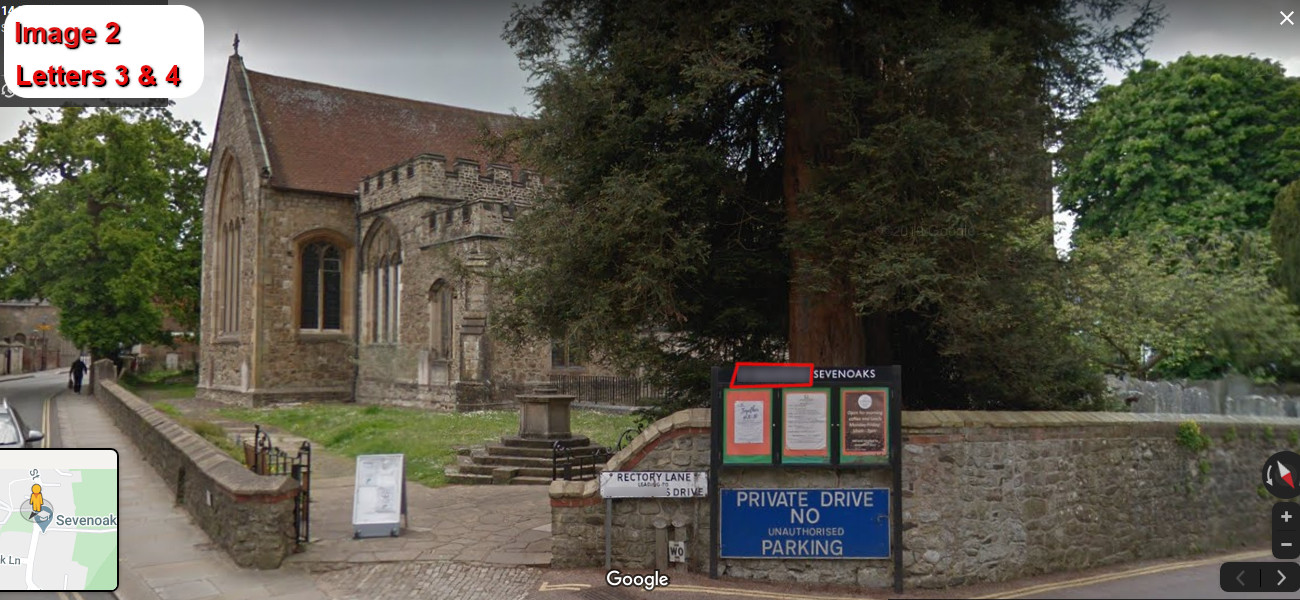 So if you find the sign reads St. Mary's Church and the panel says letters 4 & 8, you take the letters A and C. Make a note of these.