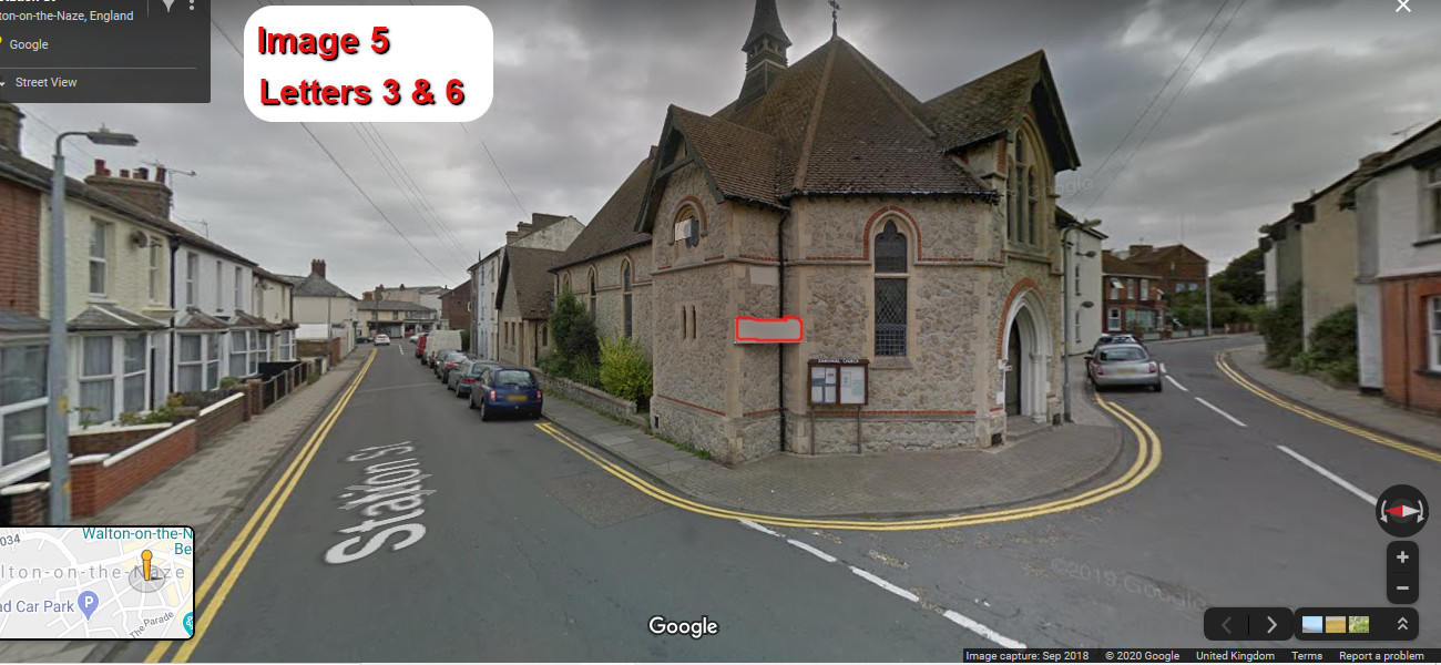 So if you find the sign reads St. Mary's Church and the panel says letters 4 & 8, you take the letters A and C. Make a note of these.