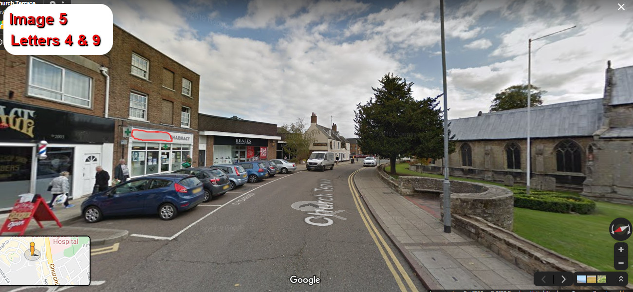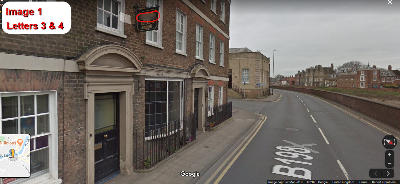Find all the letters, then re-arrange to find where the "treasure" has been hidden. It will be somewhere in the same town visible on Street View/Google Maps.