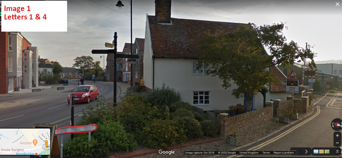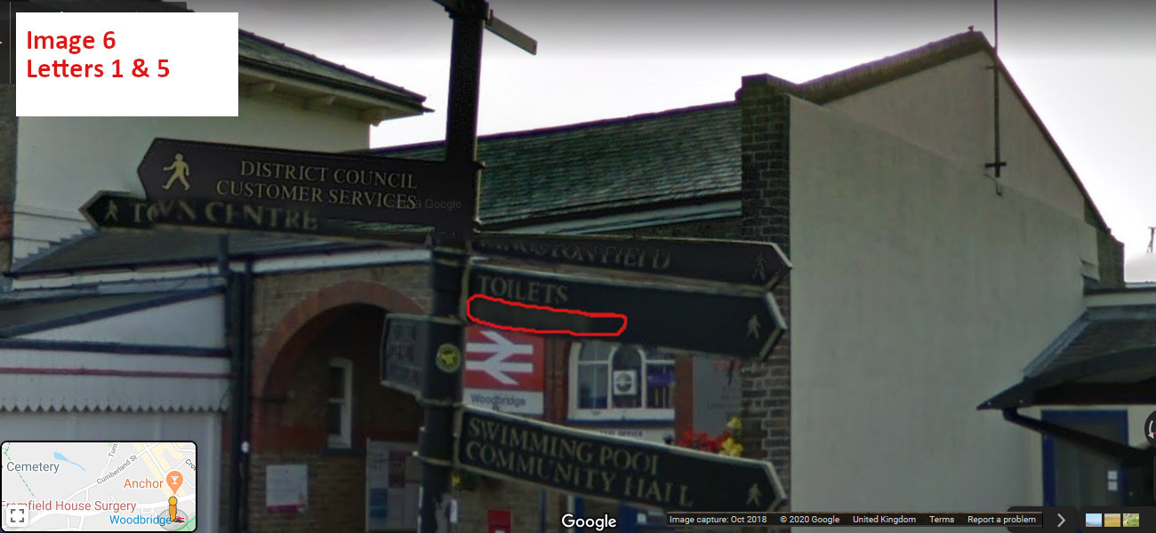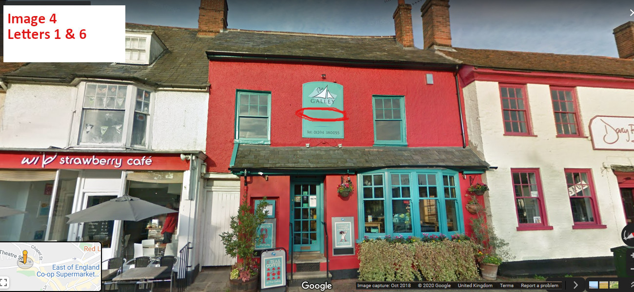Find all the letters, then re-arrange to find where the "treasure" has been hidden. It will be somewhere in the same town visible on Street View/Google Maps.
